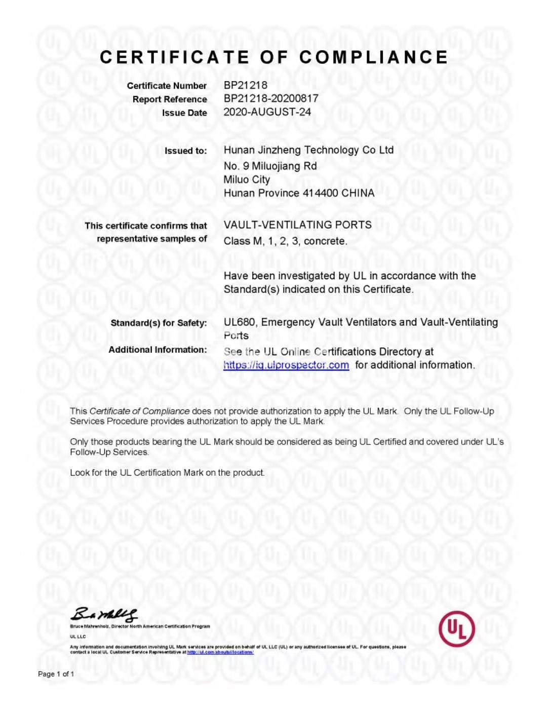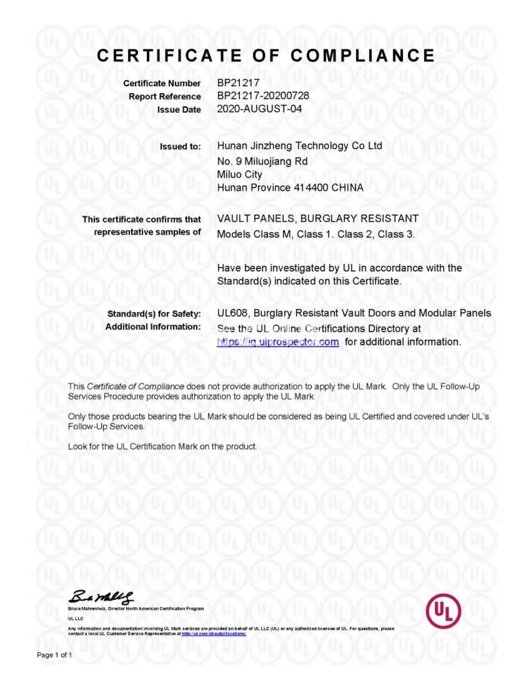 湖南午夜激情AV网站科技有限公司生产的午夜免费观看视频、金库壁板、金库通风口三款产品成功通过美国UL-608全系列认证(M级、1级、2级、3级)